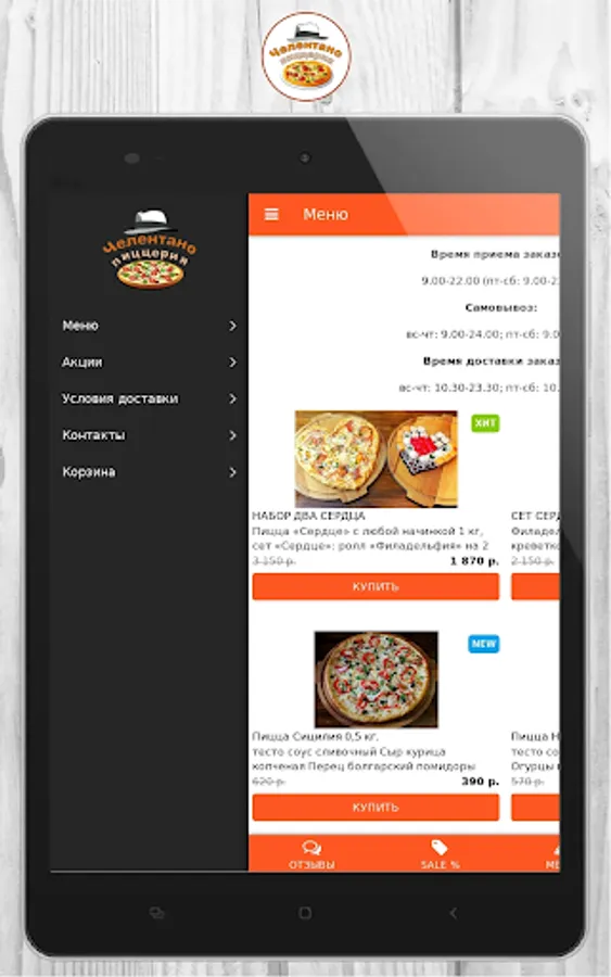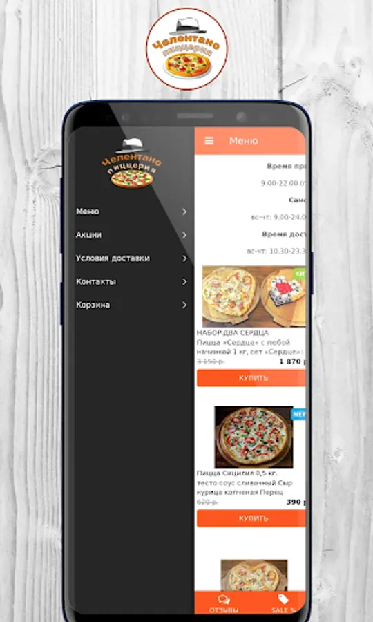 Order your favorite meals in our pizzeria is now possible through a mobile application, "Celentano"! This is a quick and easy way to order food delivery in Tyumen!