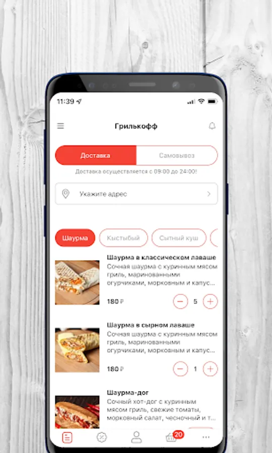 Juicy shawarma, hearty burgers, signature hot dogs. Hunger has no chance! Order food through our application in just a few clicks and in half an hour you will enjoy the selected dishes hot.