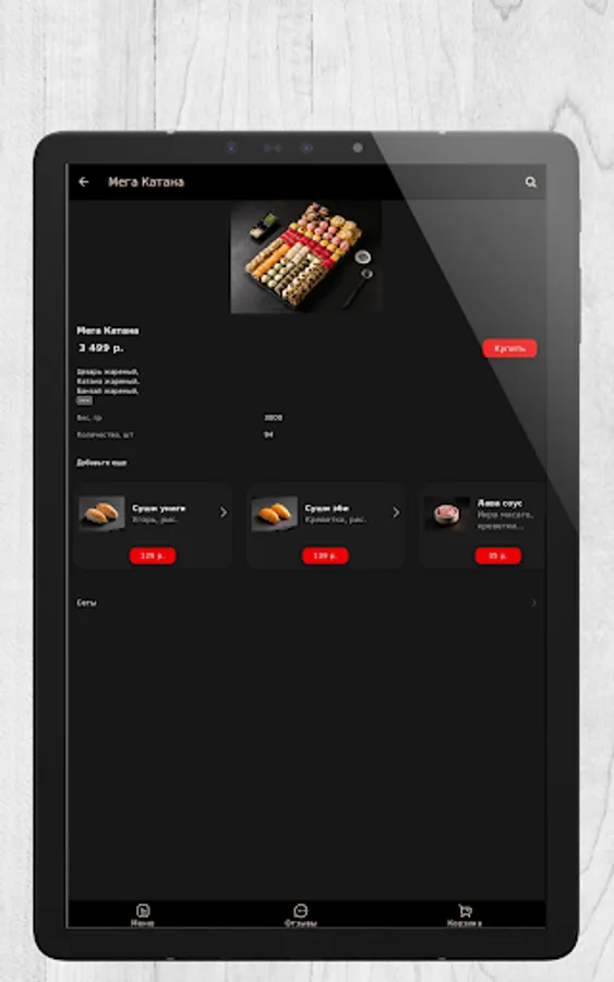 The culinary traditions of the countries of the East are preserved here. The menu includes sushi, rolls and snacks. The chefs are constantly updating the menu, improving it and making sure that the assortment does not become boring for visitors. We always strive to meet the expectations of our visitors. Thus, a wide selection of dishes, adherence to traditions, taste, affordable pricing and profitable promotions that are updated every week attract our guests and give them a reason to come back again and again. Our own courier service with a personal fleet will deliver food quickly and efficiently.
