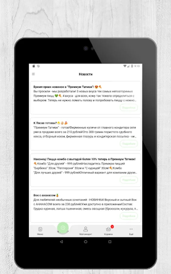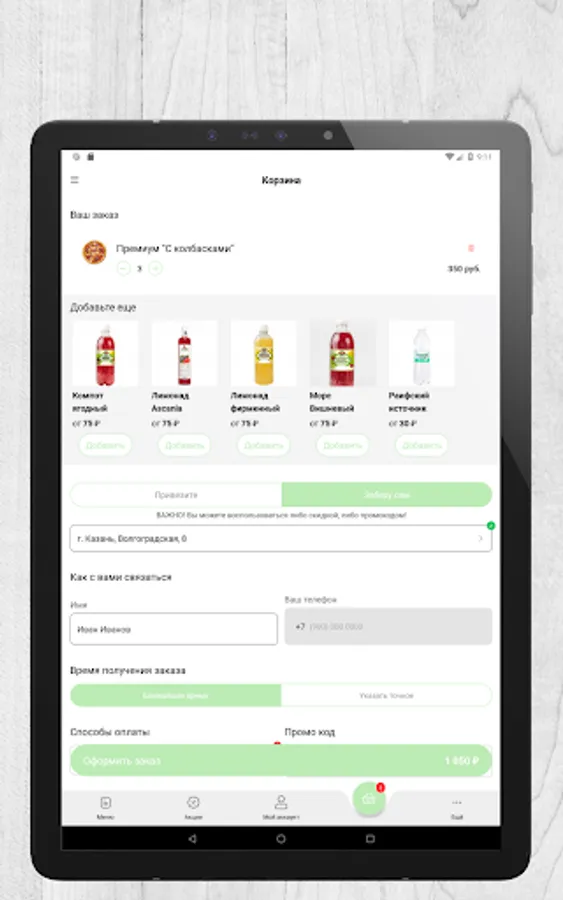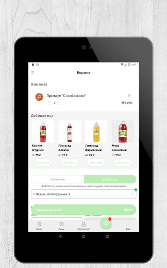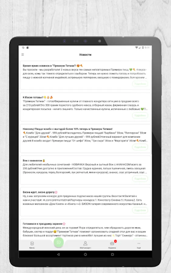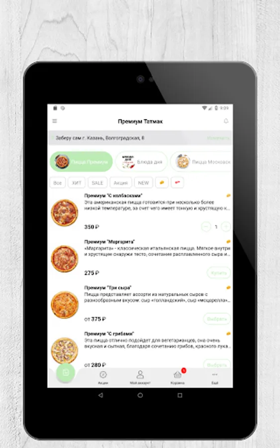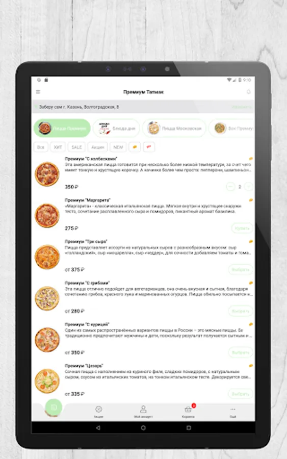 Install our application - keep delicious food always at hand! Pizza, wok, breakfasts, lunches with delivery in the city of Kazan.