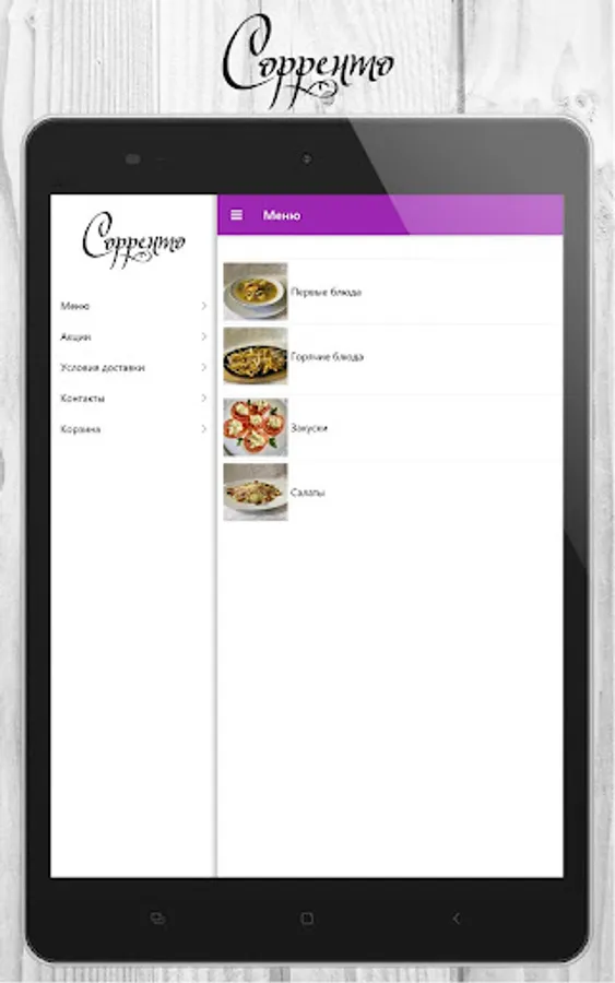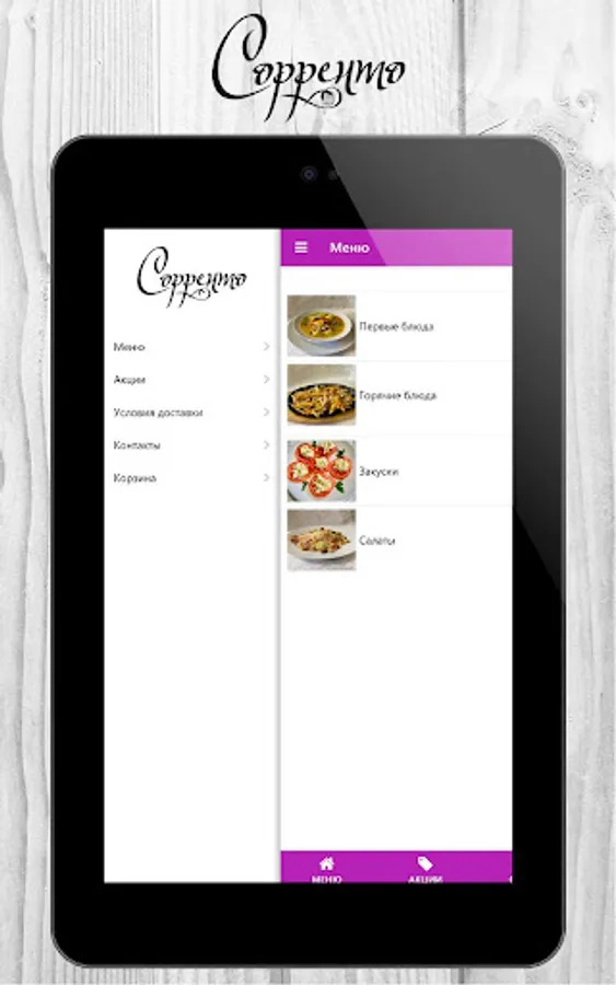 Sorrento Restaurant in Tutaev - we deliver any dish from the menu to your home or office! Soups, hot dishes, salads and snacks - ordering is easy and simple through our application. A couple of clicks and we will quickly prepare and deliver your order! With us, it’s not only tasty and convenient, but also beneficial, because when ordering through the application discounts apply! Download the application and be the first to know about our promotions!