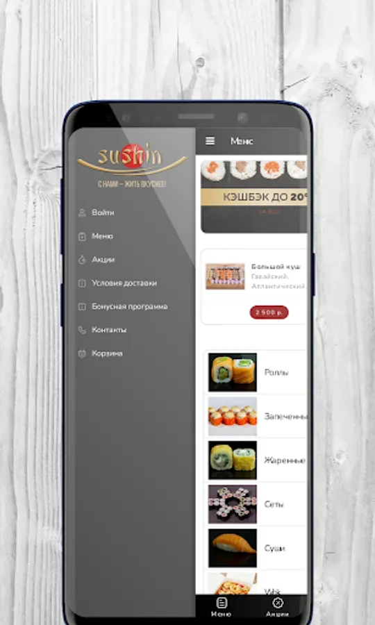 Install the Sushin app - order delicious food profitably! We give discounts and gifts when ordering through the application!