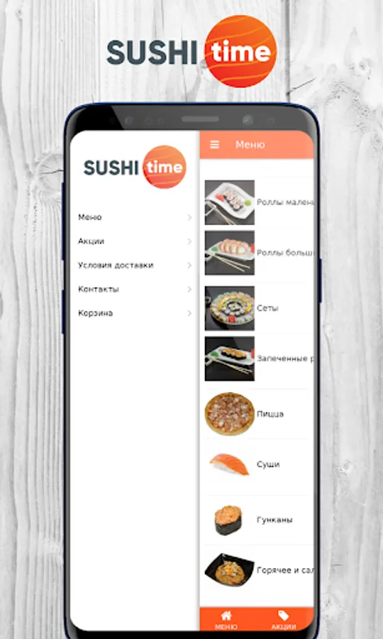Food delivery “Sushi Time” in Perm - your favorite rolls and pizza with quick delivery to your home or office. Install our application - keep tasty food always at hand and be the first to know about our promotions!