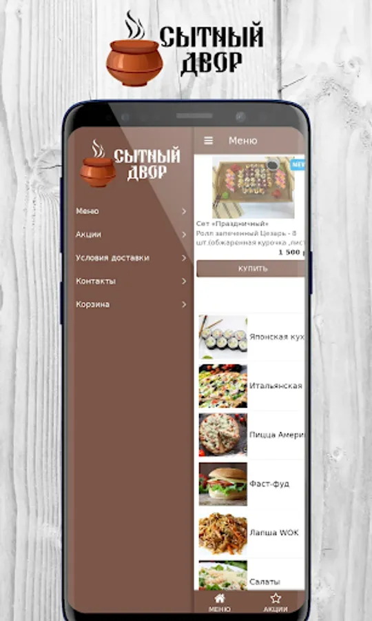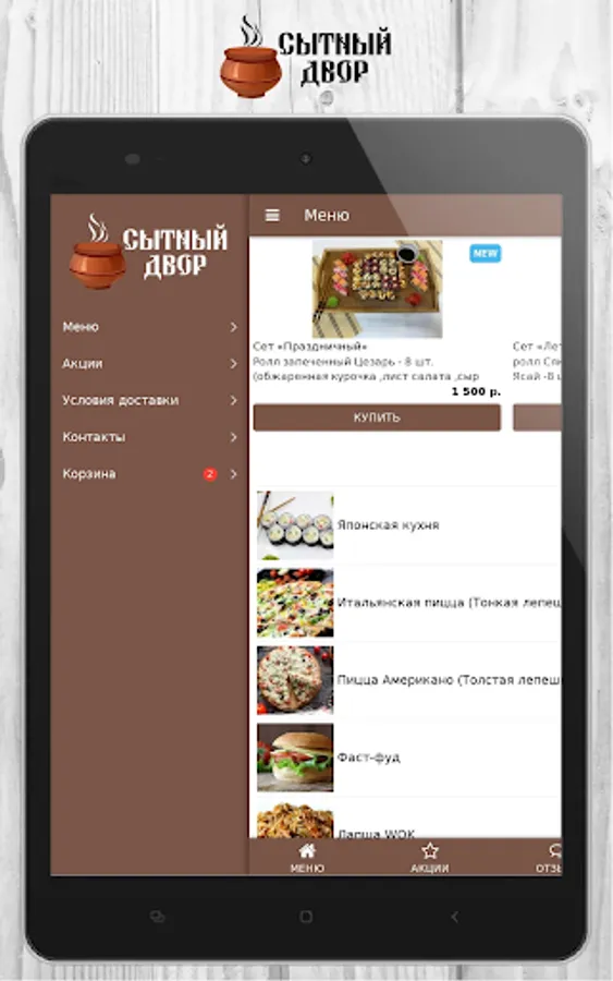 The menu includes fresh sushi and rolls, aromatic Wok dishes, hot pizza, juicy burgers and many other dishes! In the "Hearty Yard" no one will go hungry! Download the app, order delicious food and be always up to date with our profitable promotions and special offers!