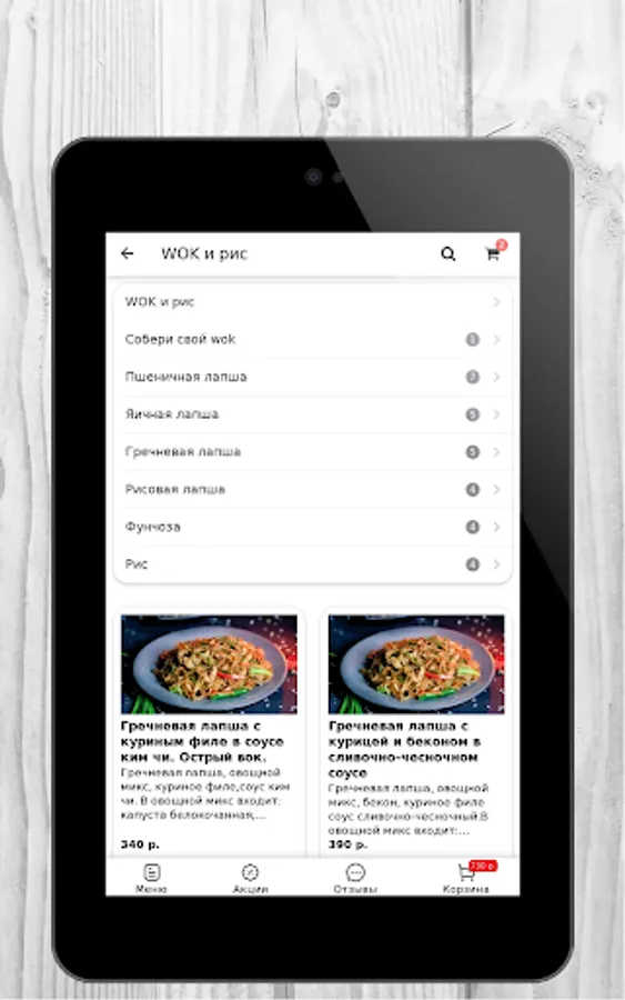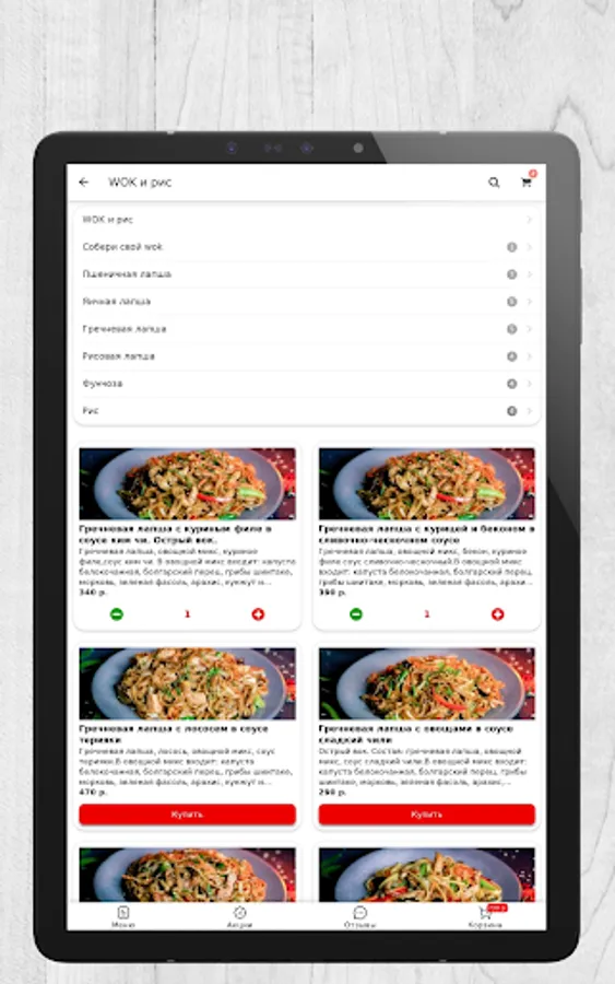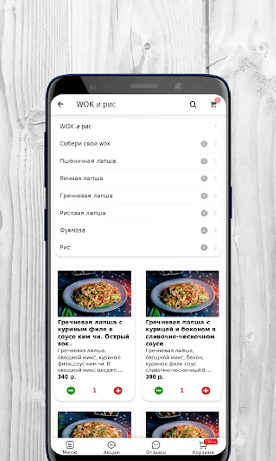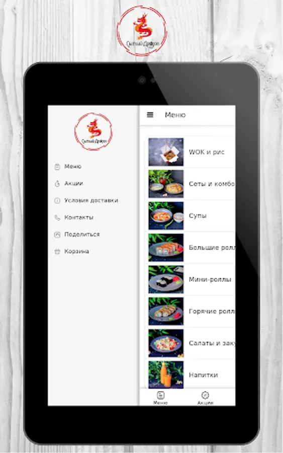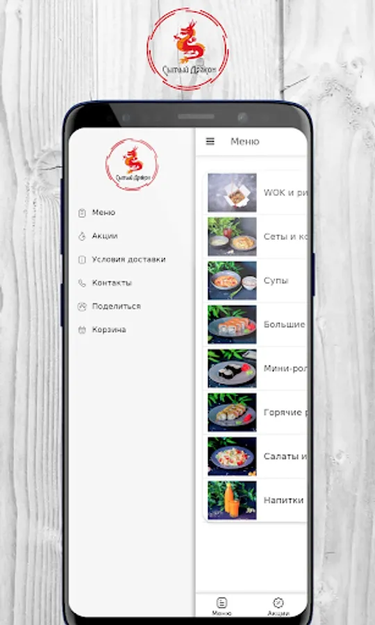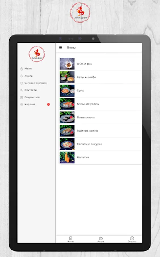 wok and soups, sushi and rolls, hot dishes and snacks.