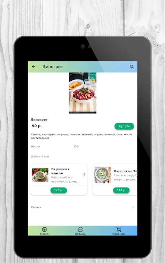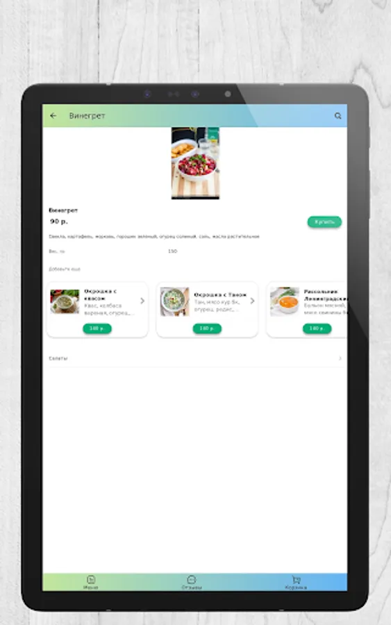 The peculiarity of our complex lunch is that if you order a full lunch, it is much cheaper than taking, for example, only the second and salad or the first and second course.