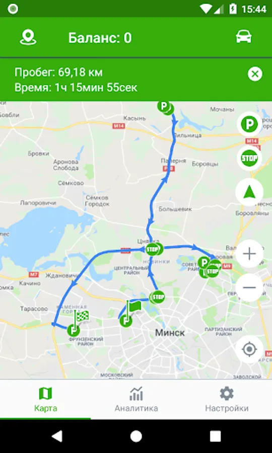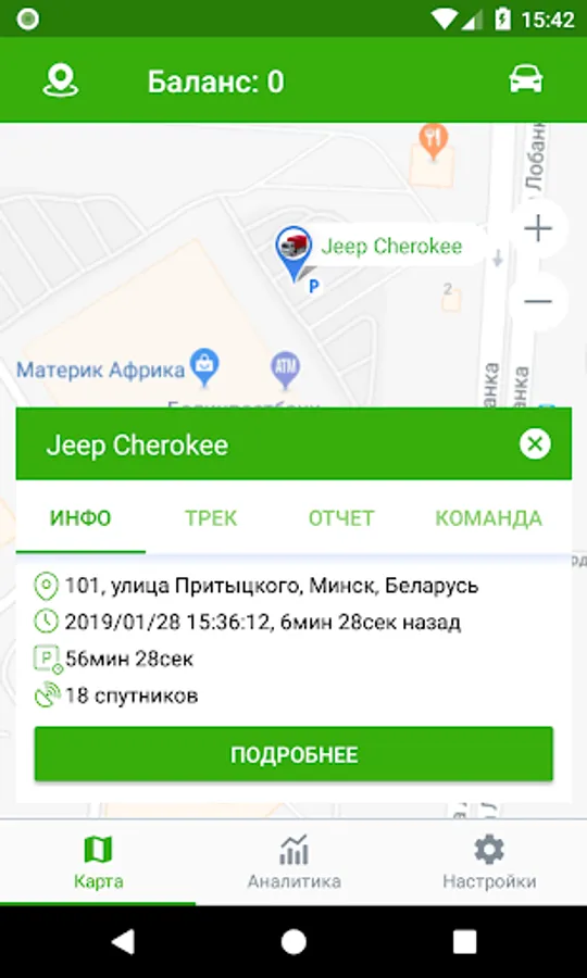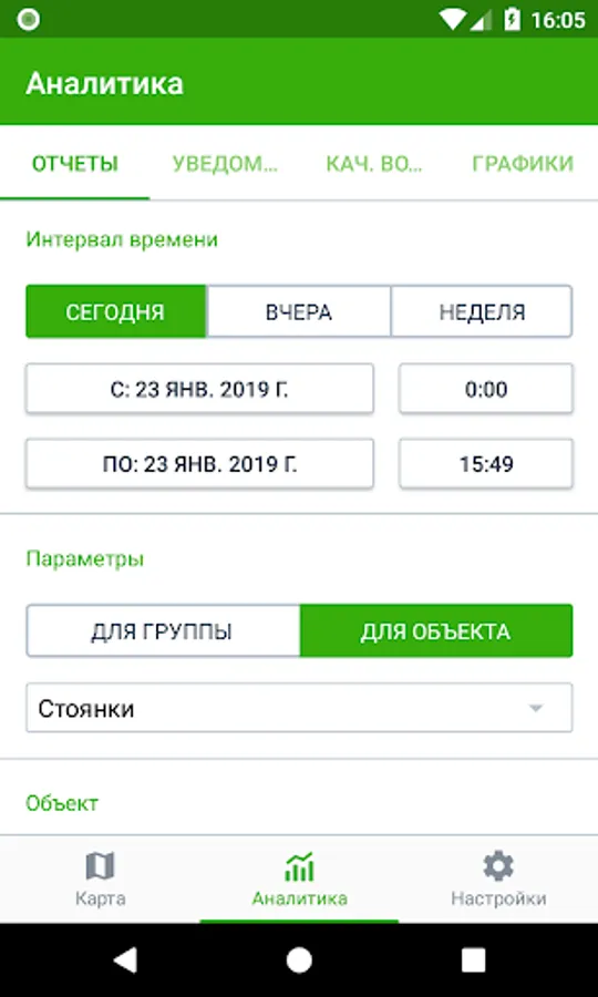 The application also allows you to generate reports, build tracks, send commands to objects, receive notifications and much more.