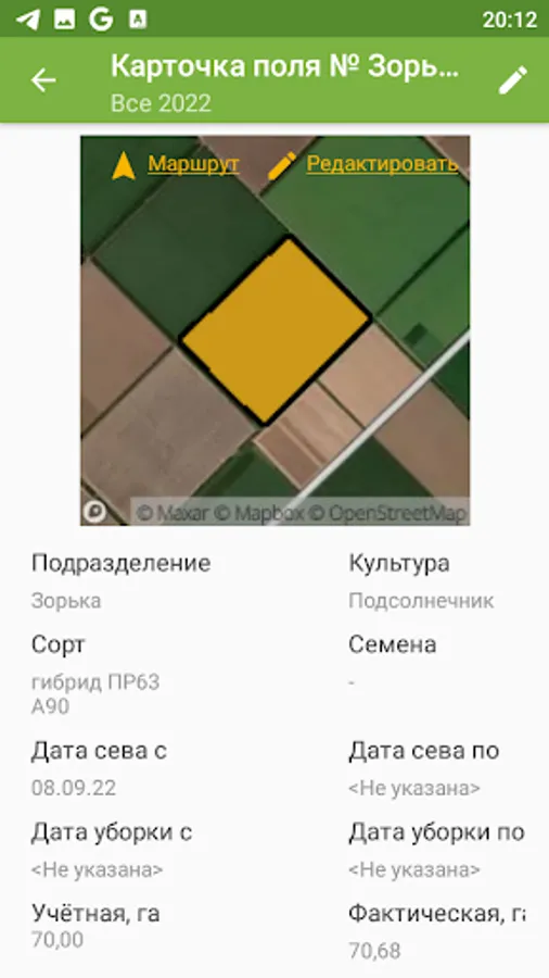 This application is part of the online service to manage the history of the field of the agricultural enterprise.
