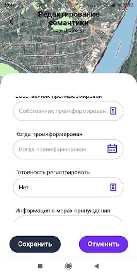 Additionally, open external data sources from the Internet were connected - a map of land plots from the Rosreestr portal, high-resolution satellite images.