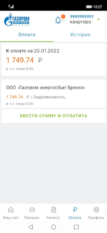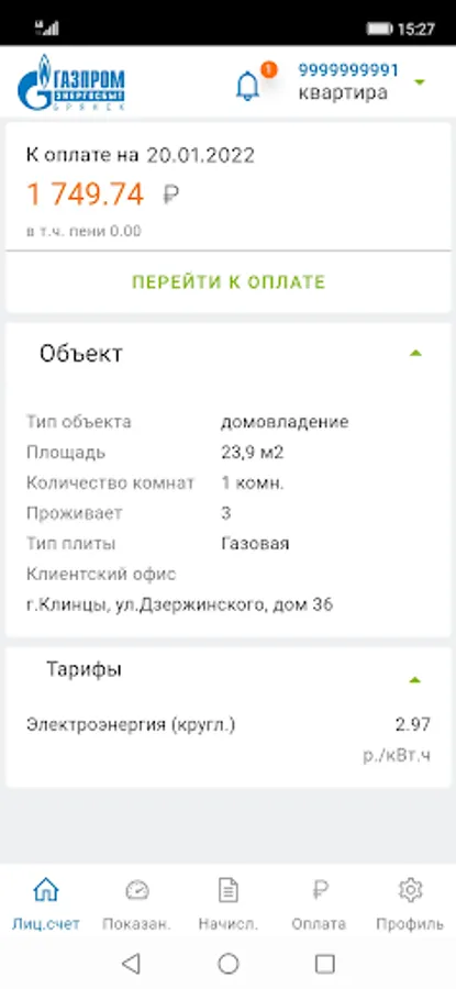 Client office for individuals in a smartphone. Here you can monitor the balance of a personal account opened with Gazprom Energosbyt Bryansk LLC, transfer meter readings, receive receipts and pay utility bills without commission.