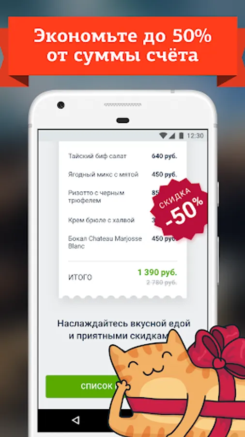 2) All you need to choose the time of visit and get Gettable code. No prints, simply call it when ordering in a restaurant, and the discount will be automatically credited to the account;