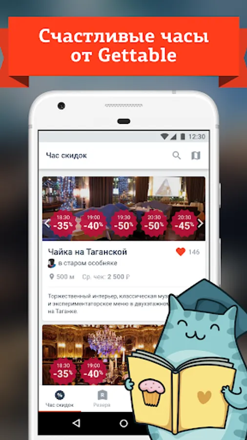 Gettable - is a mobile application that can be used for free to book tables and get discounts up to 50% at restaurants in Moscow and St. Petersburg. We will give you a vivid impression of each trip to the restaurant.
