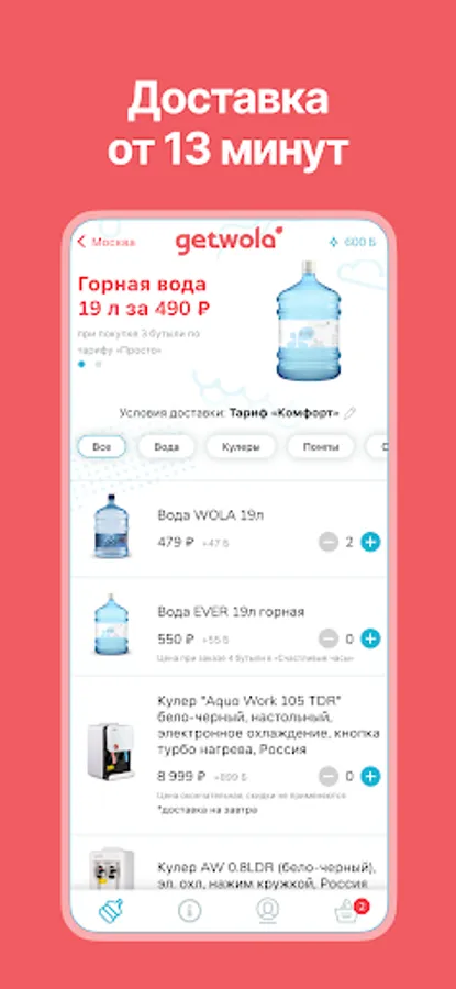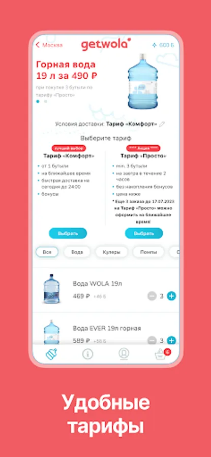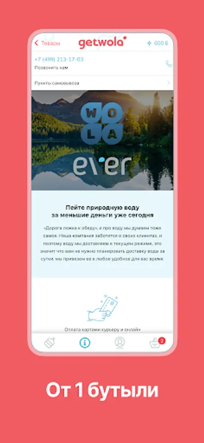 “Road spoon to dinner”, and we think the same about water. Our company cares about its customers, and therefore we deliver water in the current mode, which means that you do not need to plan the delivery of water a day in advance, we will bring it at any time convenient for you. Wola - Aratesian water of natural mineralization, Ever - mineral drinking water from the Caucasus