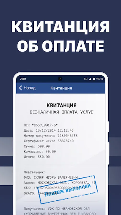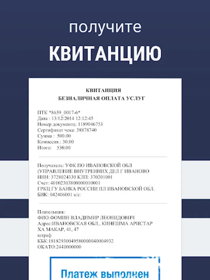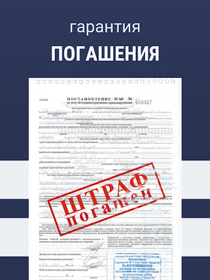 Instant payment of fines online guarantees the repayment of the administrative fine in the GIS GMP. A receipt for payment of fines will be sent to your email. A list of paid traffic police fines with a photo and receipts will be available in the application.