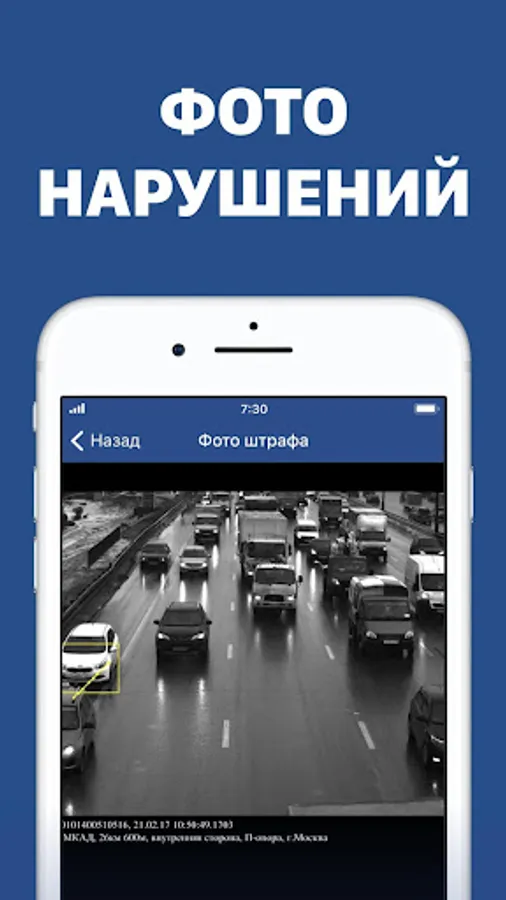 - Full information about fines: photographs, the location of the violation on the map, the date, time, address, and the specific article violated