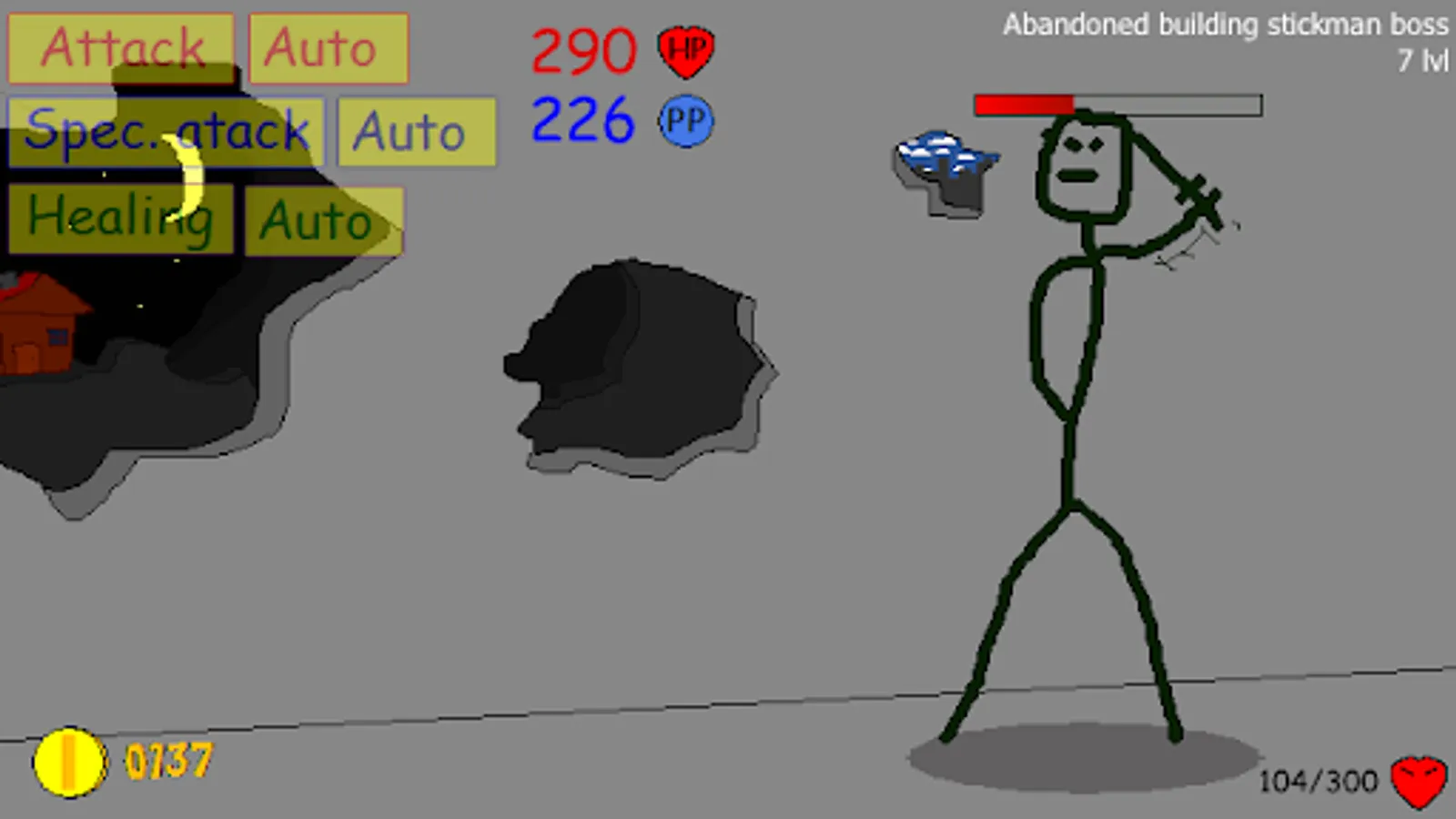 You have to get out of the abandoned building, pass through its surroundings and go through the city to eventually reach the airport. Make your way through the concrete rooms of the abandoned building, collect coins, fight off the stickmen blocking your way, jump on springs, go from level to level, drive a car, jump through windows, find secrets and make it to the finale.