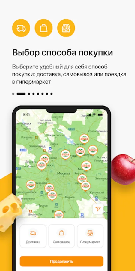 - Here you can arrange both delivery to the address and self-pickup in one of the 5 hypermarkets. The online store has a huge selection of 45 thousand products. Delivery covers Moscow and almost the entire Moscow region. Our experienced assemblers carefully select the best products and try to find everything you ordered. When ordering from 6000 rubles - delivery is free.