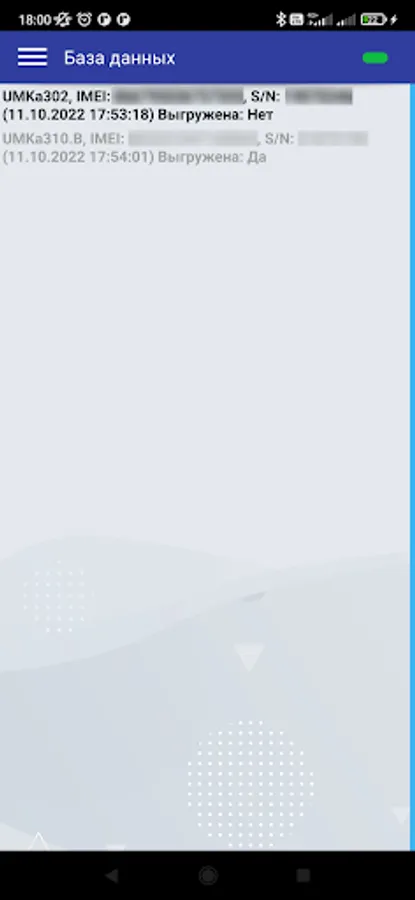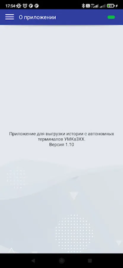The application is intended for autonomously installed terminals in the absence of communication, when the terminal itself does not have the ability to upload data to the server, it allows using a mobile device with Android OS to read the history from the terminal into the application database with the subsequent possibility of uploading this history to the server.