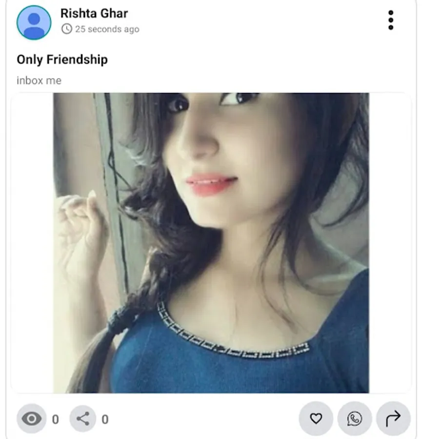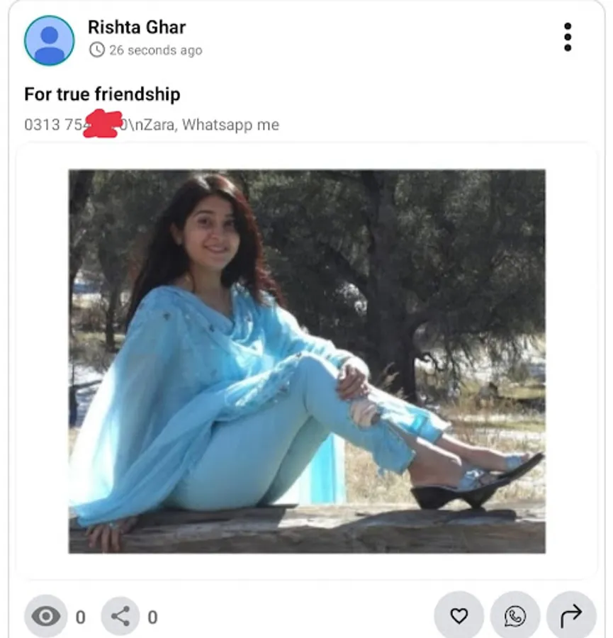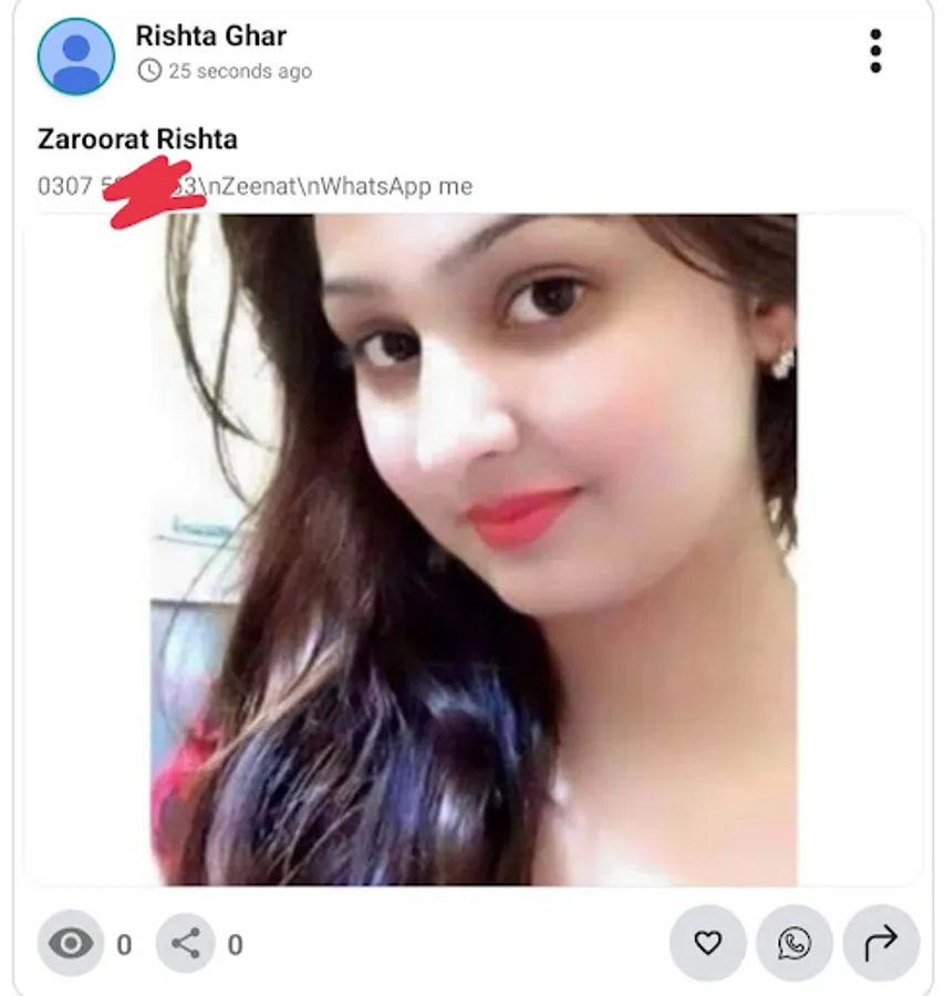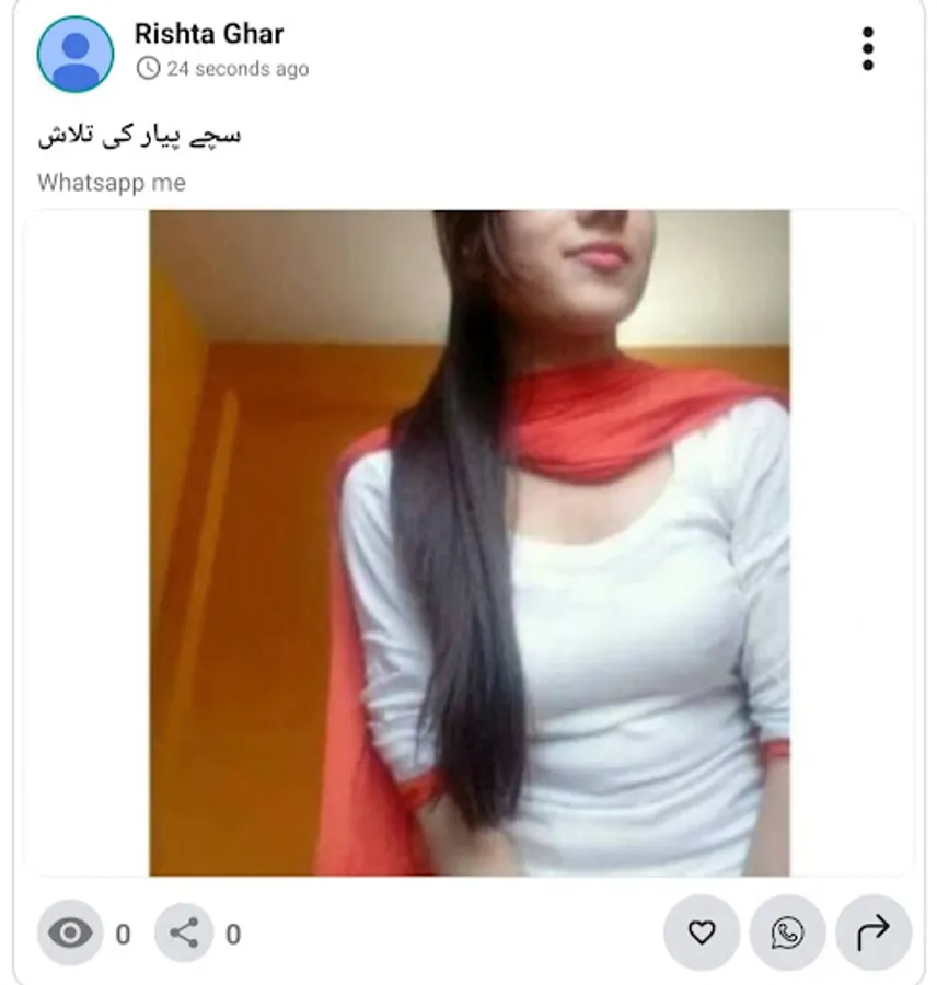 Zaroorat Rishta is a free Pakistani marriage proposals, social and dating service for local and overseas Pakistanis. It provide desi girls whatsapp numbers. Direct chat with girls. Pakistani girls whatsapp number and much more. It is a Pakistani Matrimonial online matchmaking app. If You Are Looking For a Rishta of Doctor In Pakistan, we Provides You Best Dental or Medical Doctor Rishta In Pakistan. Register Free. Dosti of girls app, whatsapp group chat, Pakistani girls whatsapp groups chat. Dedicated Matchmaking. we are Best matrimonial app provide Free matrimonial service including match making , mobile rishta Pakistan - Free rishta services to help parents to find proposals of Islamic marriage for their children with direct contact numbers. Chat with pakistani local girls. Best Pakistani shaadi app specially designed according to Pakistani culture and matrimony customs. Find your best Pakistani rishta today.