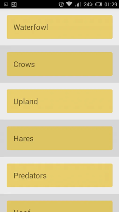 Waterfowl, upland, hoofed wildfowl. Predators.