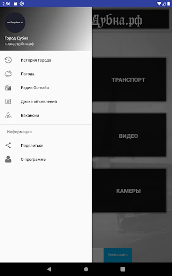 "City of Dubna" - an application based on information from the site of the city of Dubna.