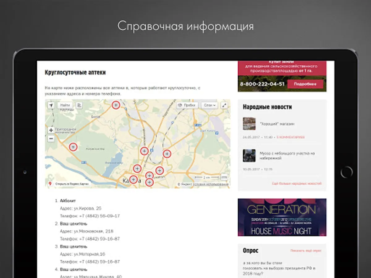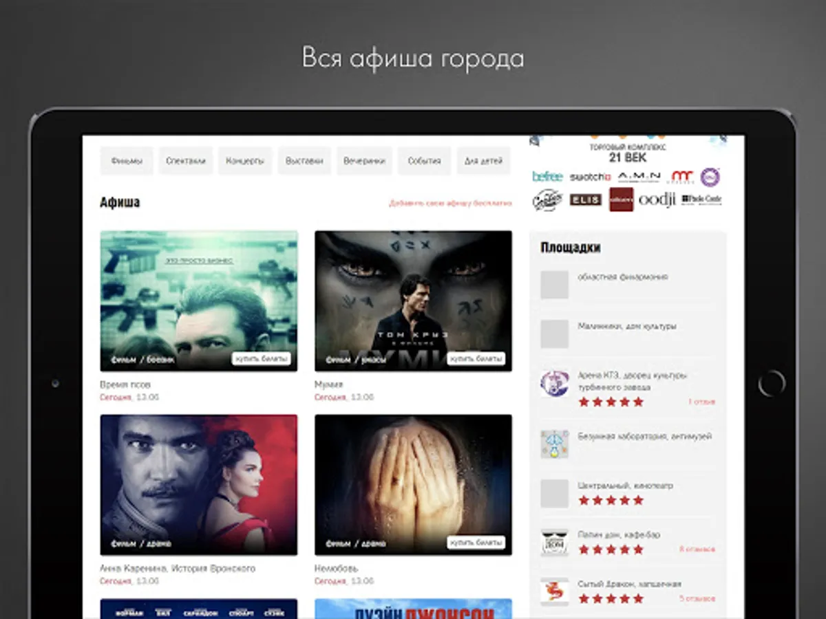 - Find how to spend free time: we have a schedule of films in cinemas and exhibitions in the museums, the start time of concerts and performances, as well as the interesting parties and children's workshops in a variety of cafes and restaurants in our city