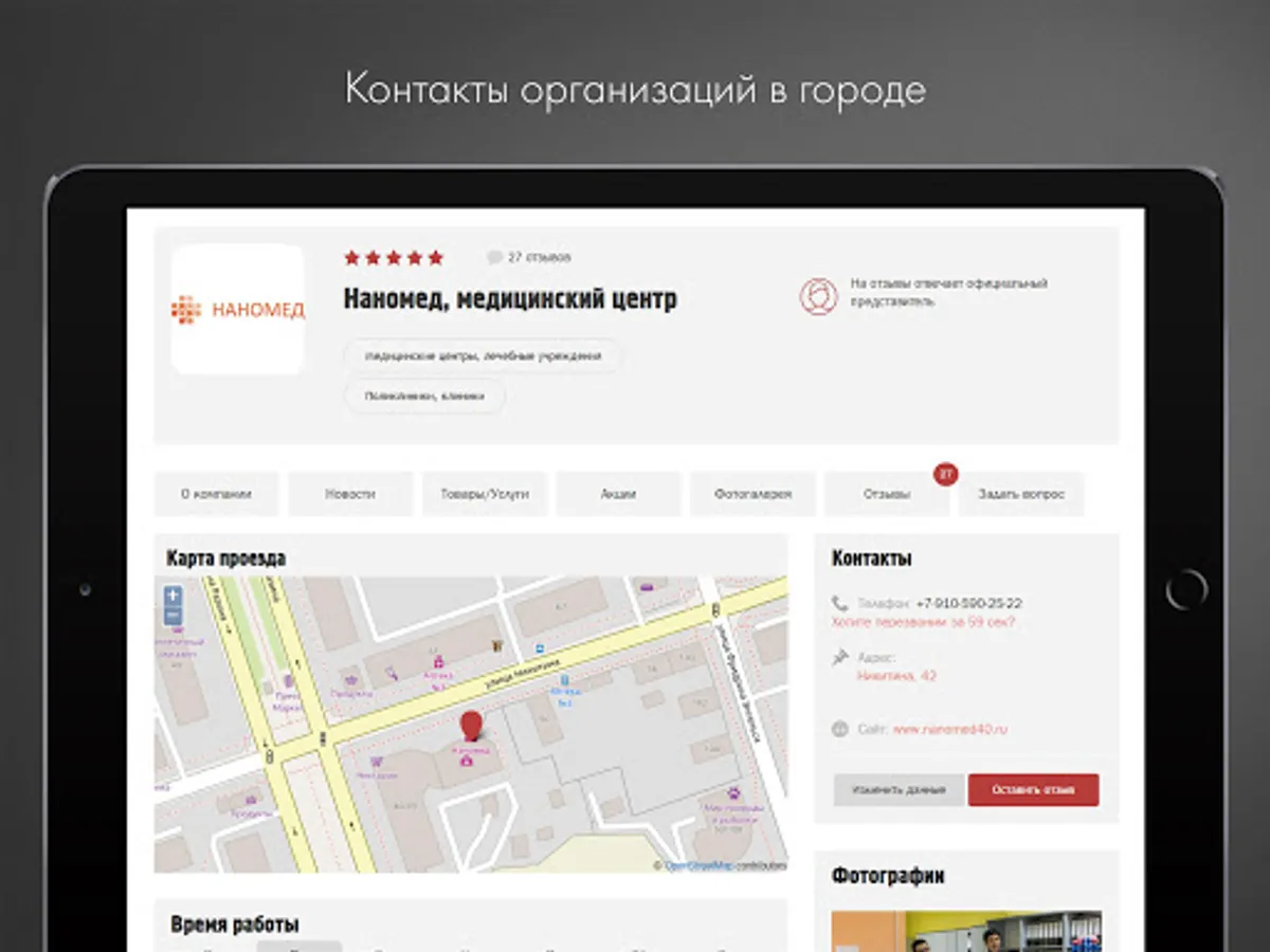 - See contacts and location of the organizations on the city map