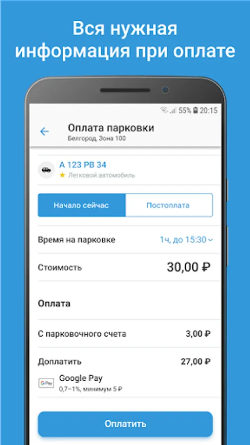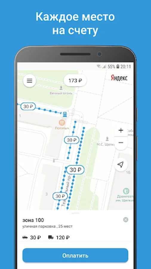 If the mobile app runs out of money, you can pay for parking with a bank card, Yandex.Money* electronic money, or from your mobile phone account.