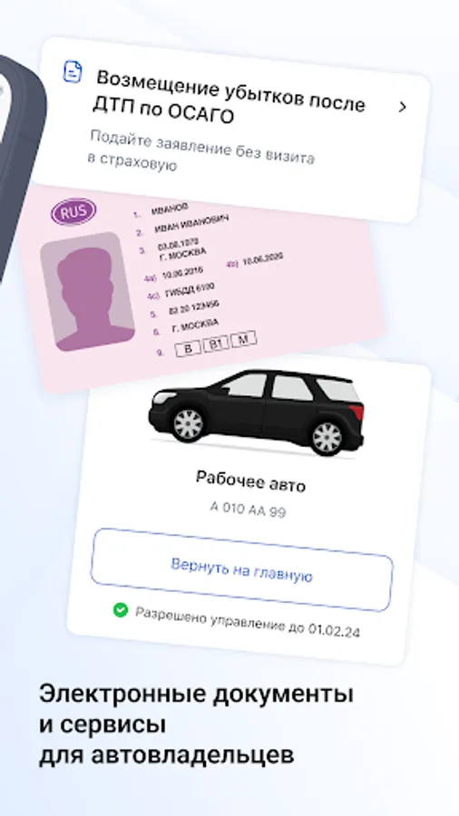 "Gosuslugi Avto" - electronic documents and services for car owners. Submit your rights and STS electronically, file an accident according to the European protocol online and an application to the insurance company for loss settlement, receive notifications of fines on time