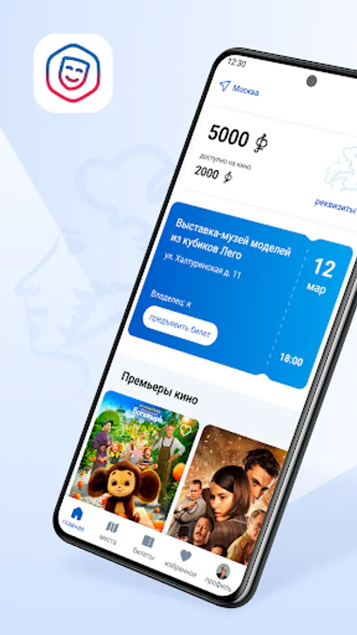 You can spend 5,000 ₽ on the events of the Pushkin Program, of which up to 2,000 ₽ are for movie tickets.