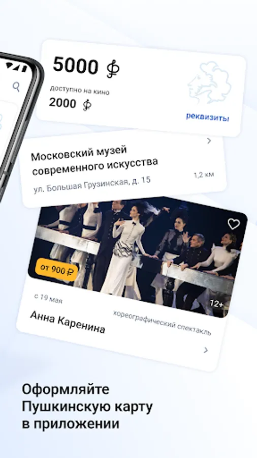 Issue a free "Pushkin card" with a balance of 5000 ₽ and visit cinemas, museums, theaters and concert halls at the expense of the state. The card is valid for young people from 14 to 22 years old