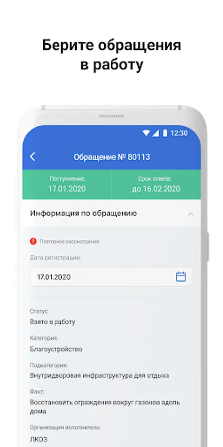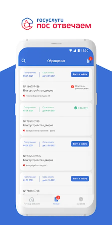 The official application for the work of employees of government bodies and local self-government with citizens' appeals and incidents from social networks in the POS personal account