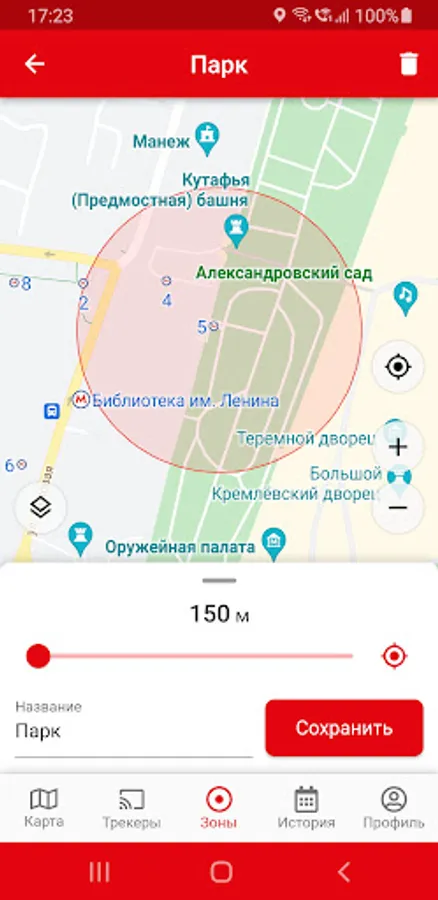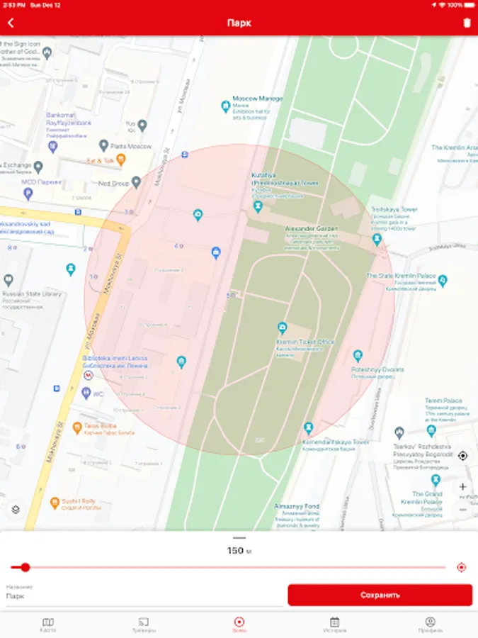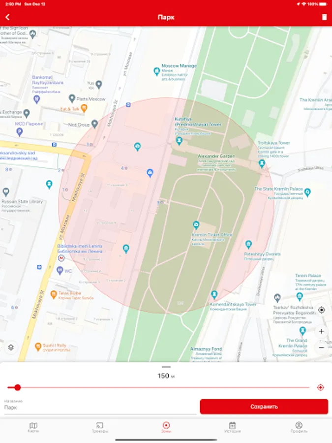 * Set a permitted area and receive notifications as soon as your GPS tracker leaves this area