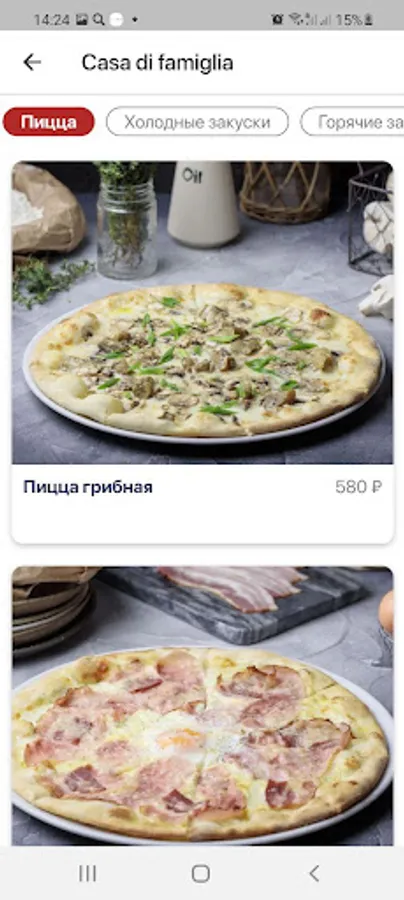 Ordering dishes for delivery and pickup from all restaurants of the Granat Restaurants group: