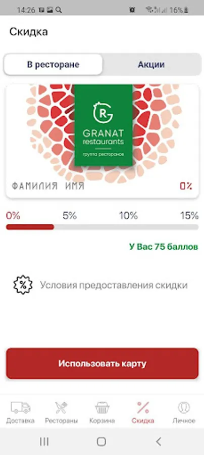 • Provision of a discount on the action "Hold the discount" when ordering food delivery;