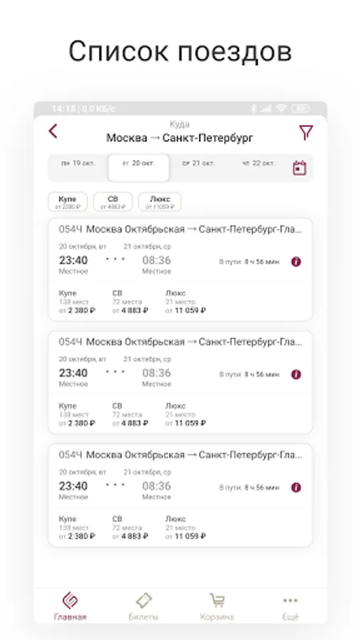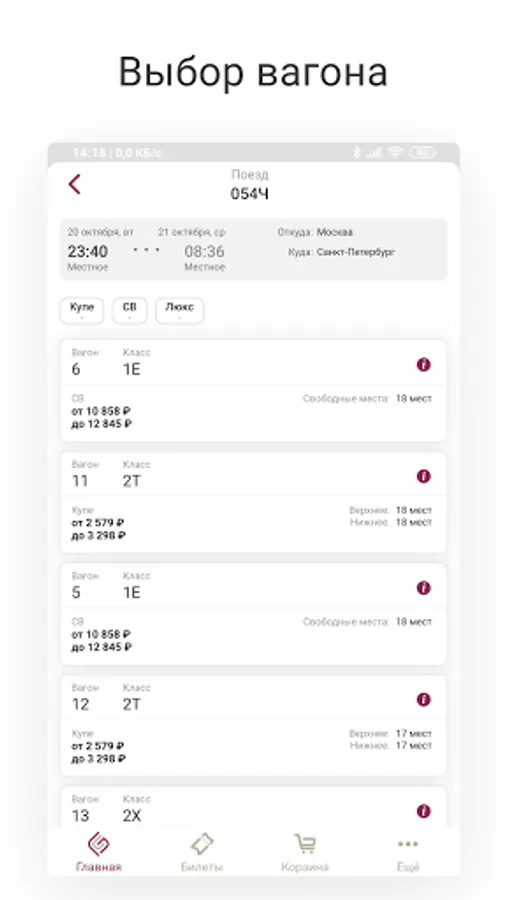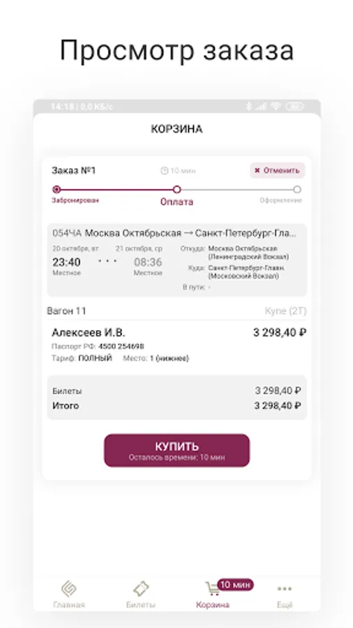 Viewing the route of the trip. View purchased tickets for past and future trips.