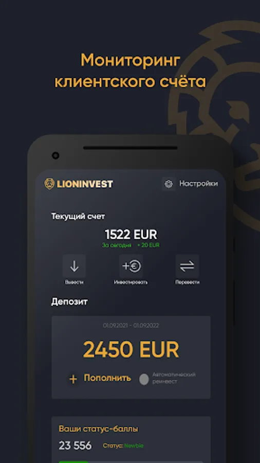 Lioninvest presents a whole range of services that you get access to immediately after registration:
