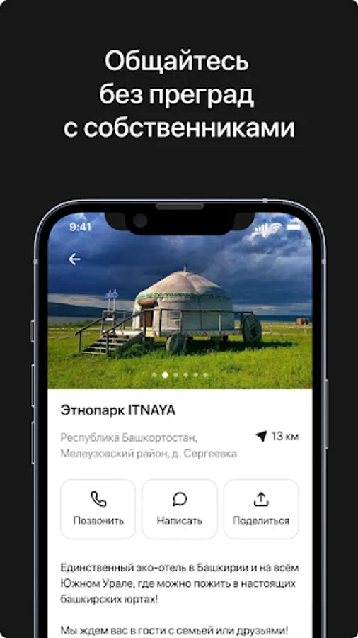 In this application you can find the most interesting places for a pleasant stay. You can get into the outback by filming an unusual glamping with a Japanese Furako tub.