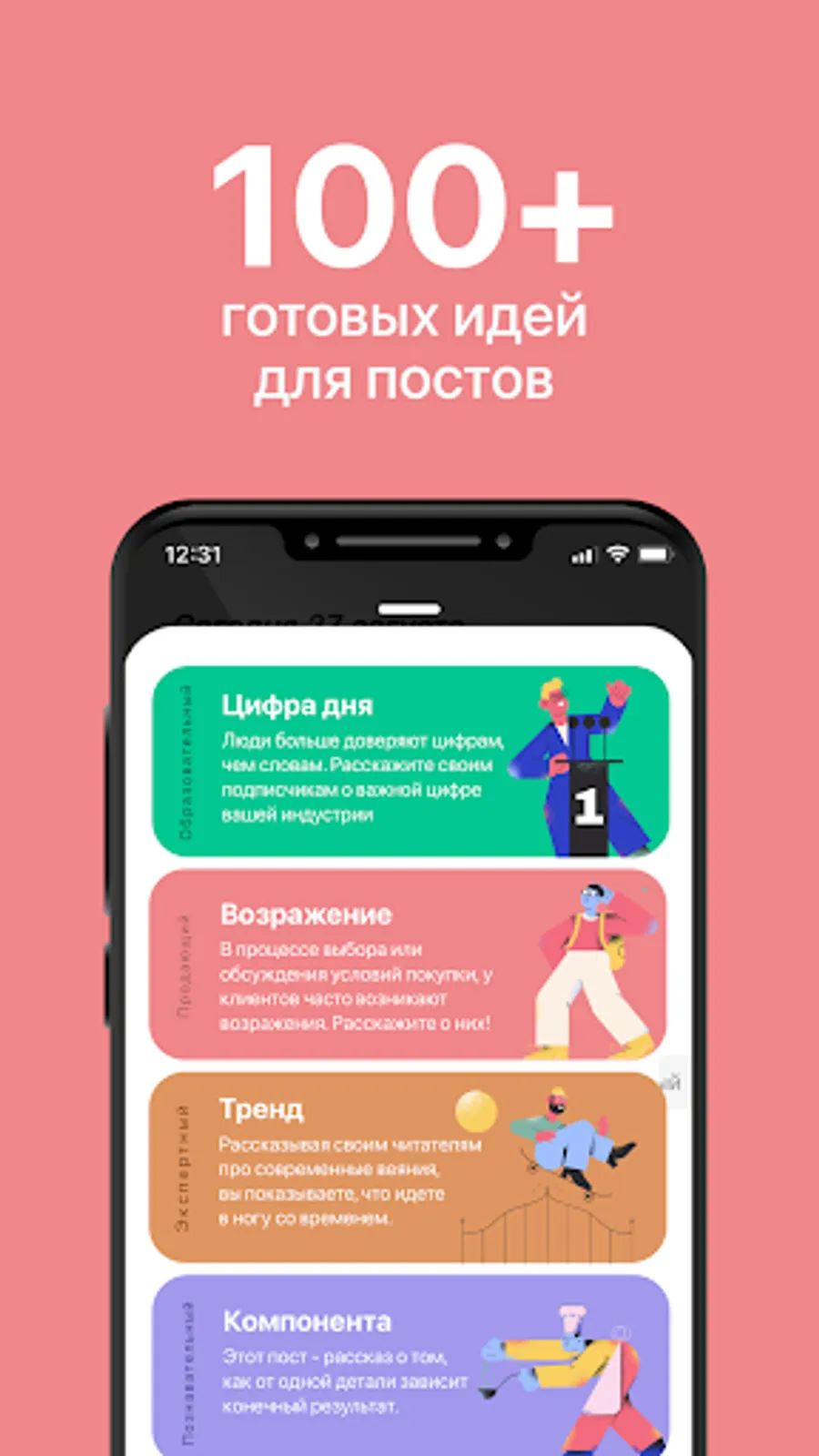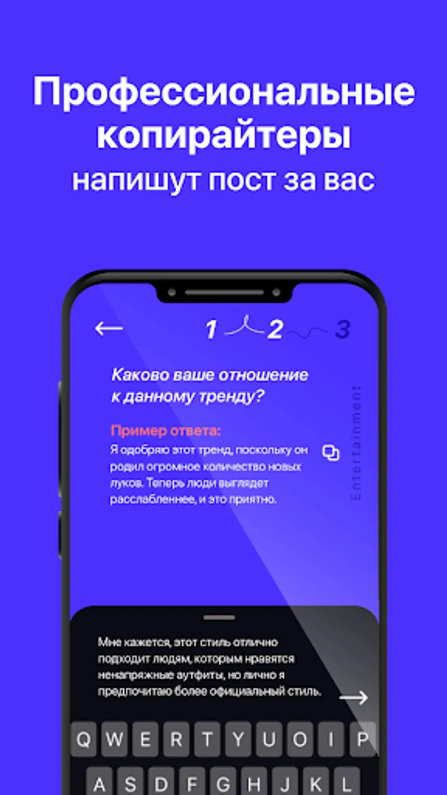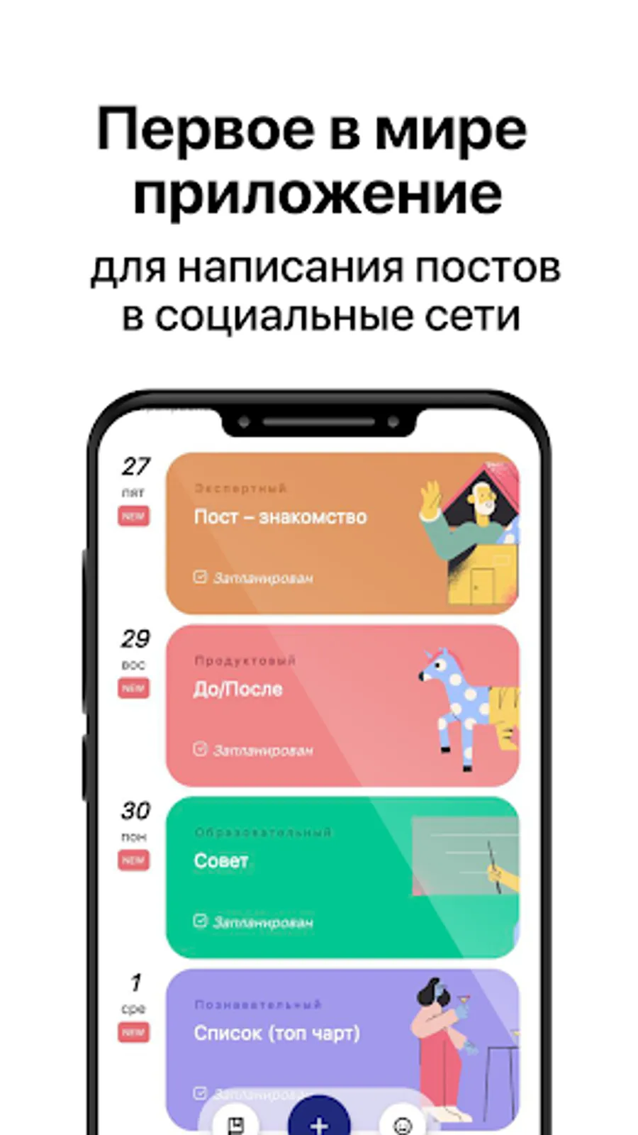 Content App – первое приложение которое помогает писать посты в социальных сетях. Идеально подходит тем, кто не умеет или не знает о чем писать. Для профессионалов отличная помощь в ведение аккаунта.