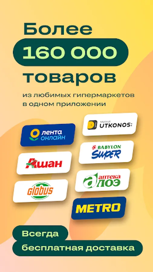 🛒 FAVORITE STORES. We deliver products from all major supermarket chains and hypermarkets, you can choose delivery from any store within your reach!
