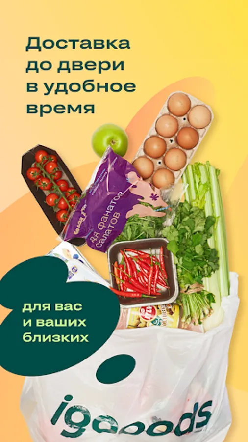 igooods is a food delivery service from LENTA, AUCHAN, METRO, GLOBUS, PLUTONOS MINI and other stores at low prices! Fast delivery of products to your home at a convenient time for you!