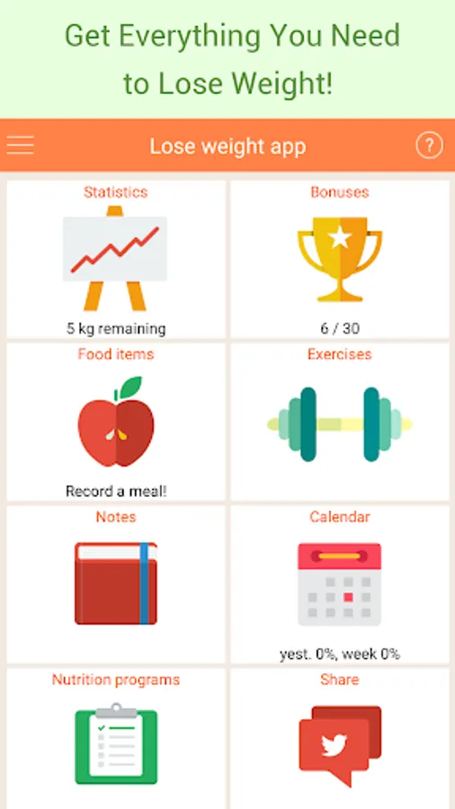 The app "Lose Weight Without Dieting" is an easy-to-use calorie counter that provides you with a fun and comfortable way to lose weight! You simply record all of your meals in the app, (which is far more convenient than carrying a journal everywhere you go!) and it will tell you whether or not the meal was healthy. It will also calculate the calories, proteins, fats, and carbs. If you forget to record any meals, the app will remind you!