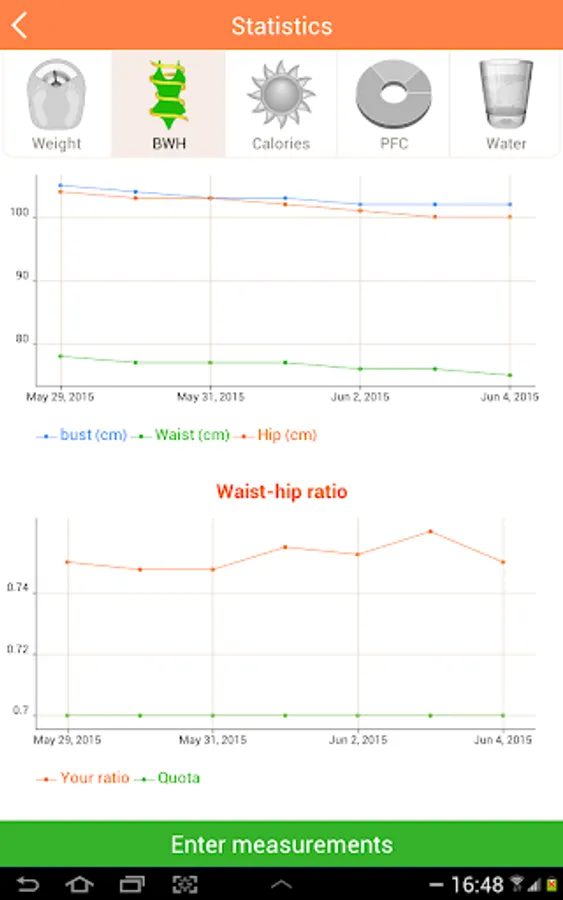 Don’t forget to weigh in! "Lose Weight Without Dieting" tracks your weight, as well as your bust, waist, and thigh measurements, so you can monitor your progress towards your slimmed down goals! The easy-to-read graphs will be a source of motivation and encouragement to keep working.