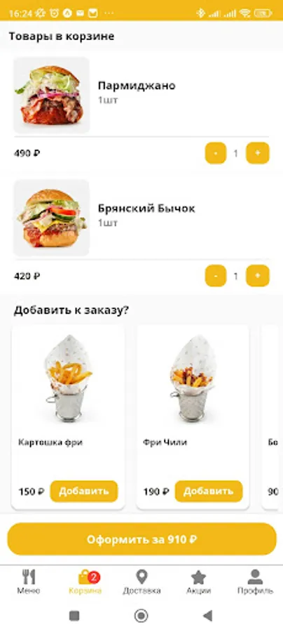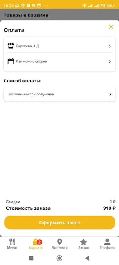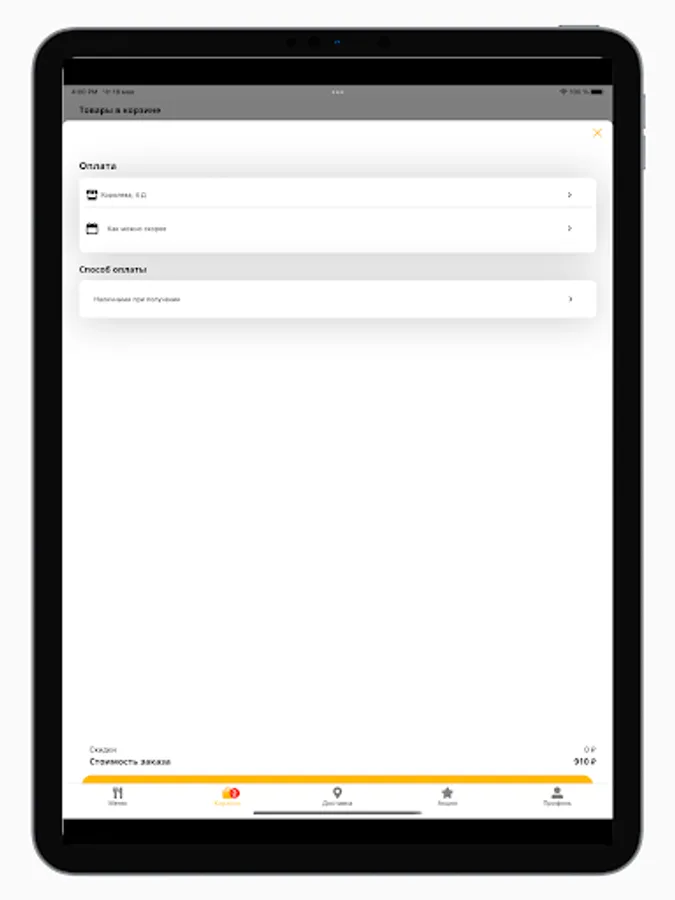 Make purchases of your favorite dishes in the Artel app.