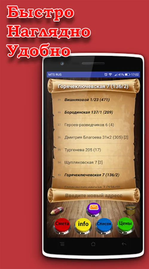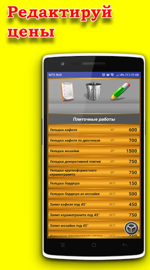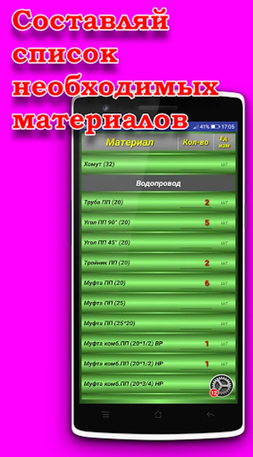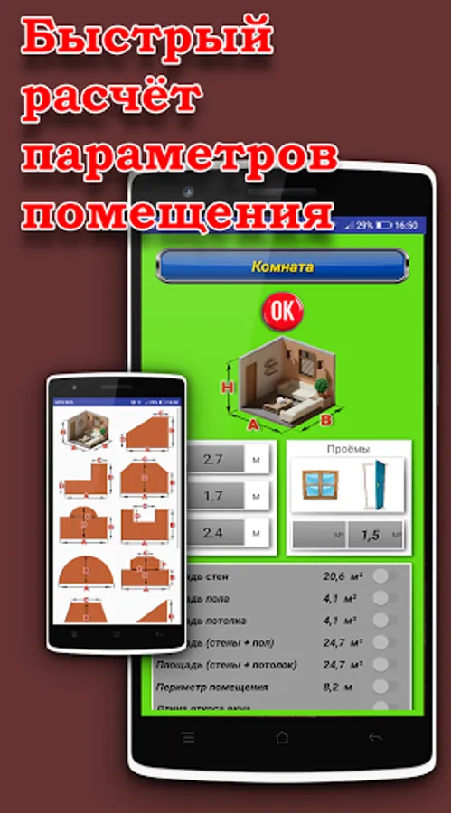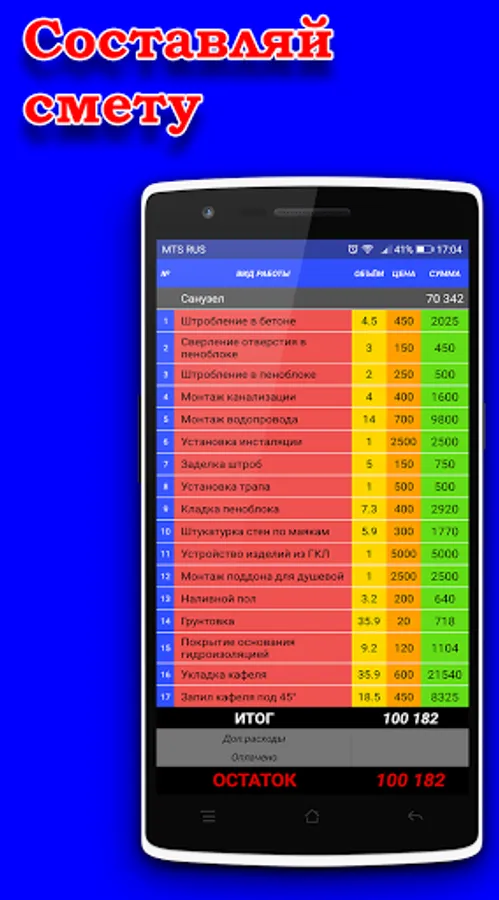 The application is designed for quick preparation of estimates and calculations when finishing or renovating apartments, houses, offices.