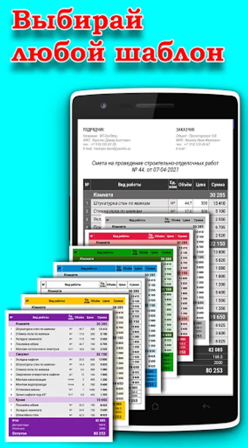 This application will help you quickly and accurately draw up a finished estimate for construction work and send it to the customer, as well as form a list of all materials necessary for the repair.