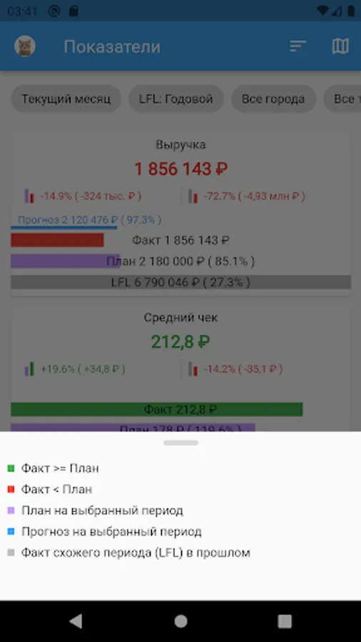 HEADO allows you to conduct LFL sales analysis in a simple and understandable way - without reports, downloads and complex BI systems. Choose the desired period and make a comparison - all the data on the screen of your mobile phone.