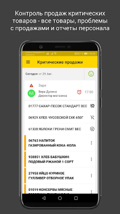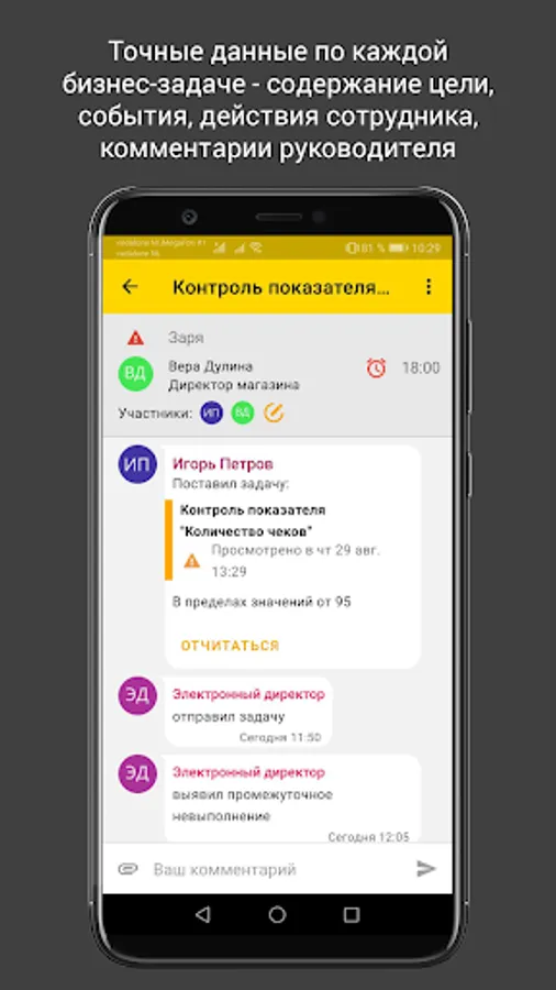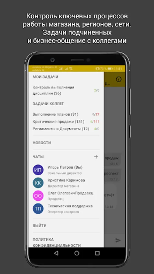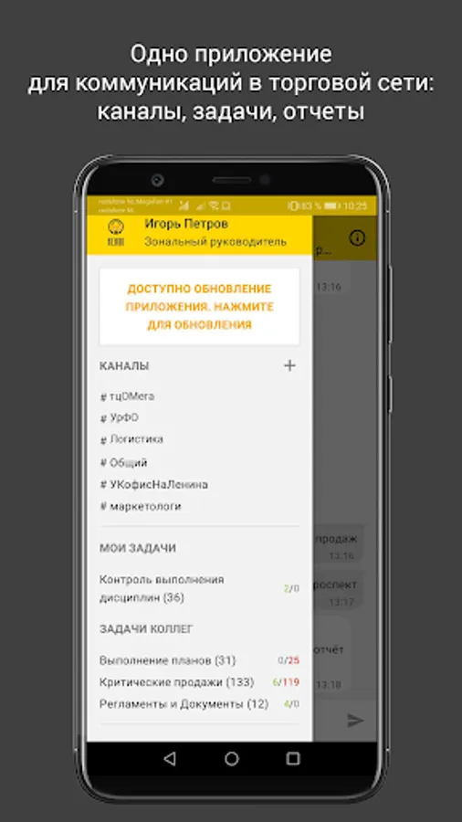 The HEADO Business Communicator is a mobile application for retail chains working with the online sales management system HEADO. The communicator is a means of delivery, control and discussion of business tasks related to sales management of stores, regions and the entire distribution network. HEADO automatically sets tasks to the executors, checks their implementation and reports to managers on the status of tasks. Tasks include control of shelves and display, sales of key goods, fulfillment of sales plans for the day and month, adherence to the store’s working hours, current stock balances, preparation and sale of promotional items, informing staff about key store performance indicators.