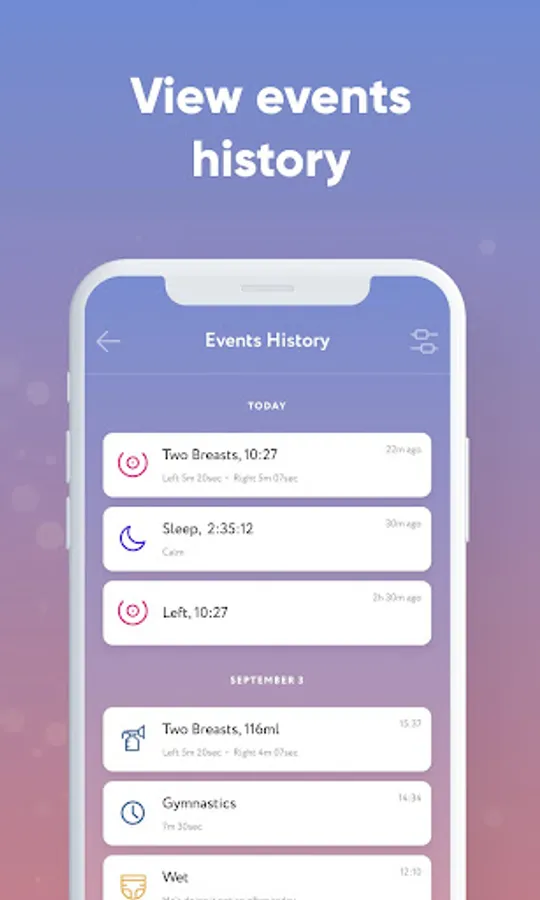 👪 Partner sharing: track baby’s events together with other caregivers with data synced across multiple devices.