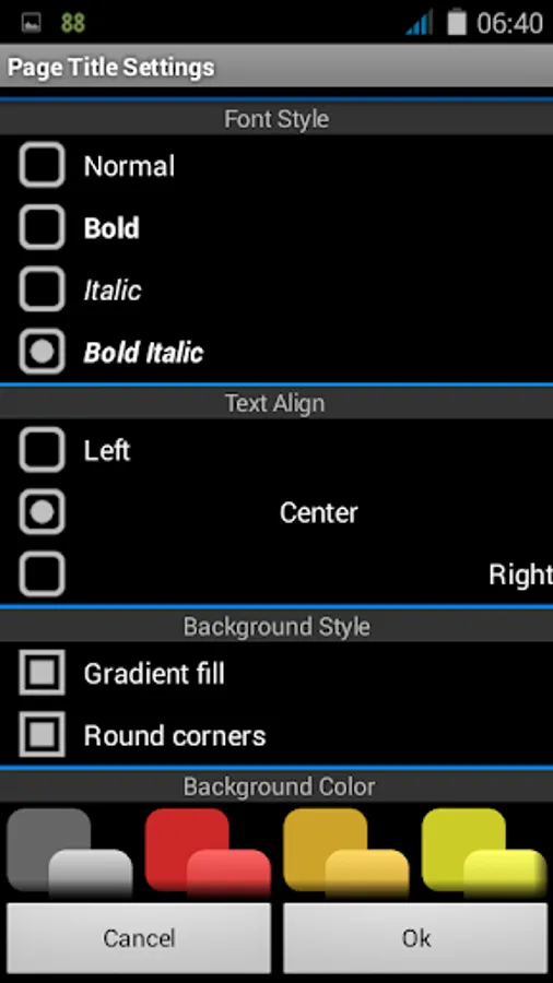 Configuration application "Page Title Settings" allows to configure background and font parameters of widget.